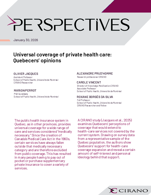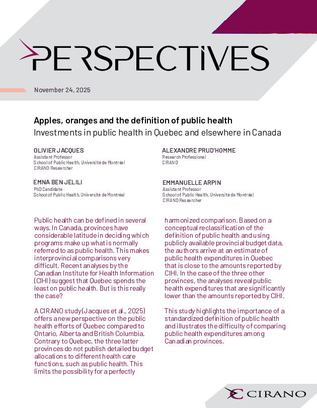 PERSPECTIVES est la revue de diffusion et de valorisation de la recherche au CIRANO. Rédigés dans une forme accessible à un auditoire élargi, les articles de la revue PERSPECTIVES assurent une visibilité aux travaux et à l’expertise de la communauté de recherche du CIRANO.